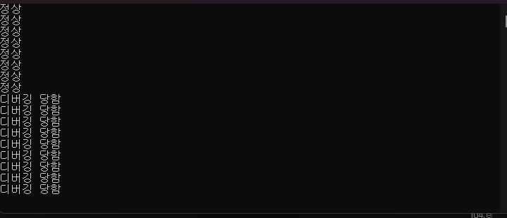 오른쪽으로 진행이되면서 "정상"을 뱉어주고 있다.