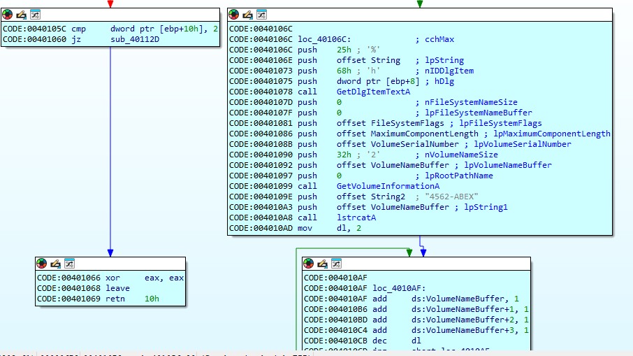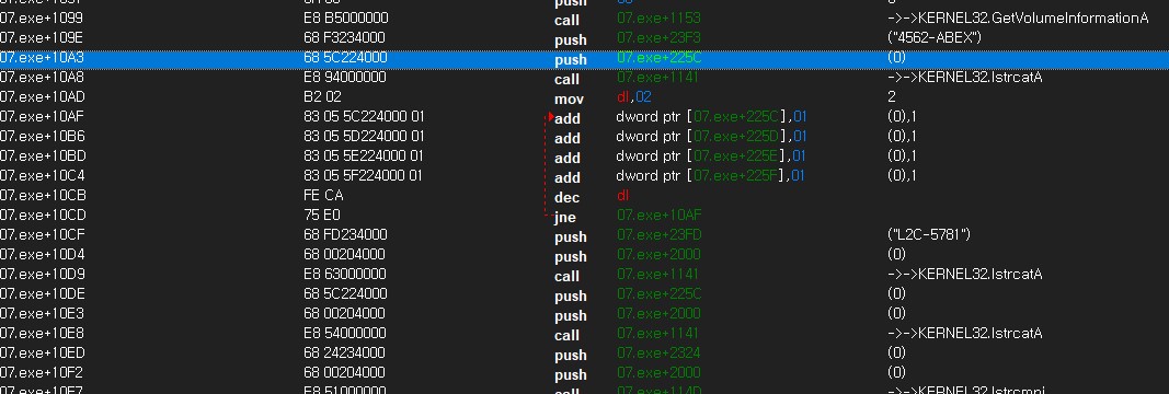 GetVolumeInformationA 함수를 호출한다.