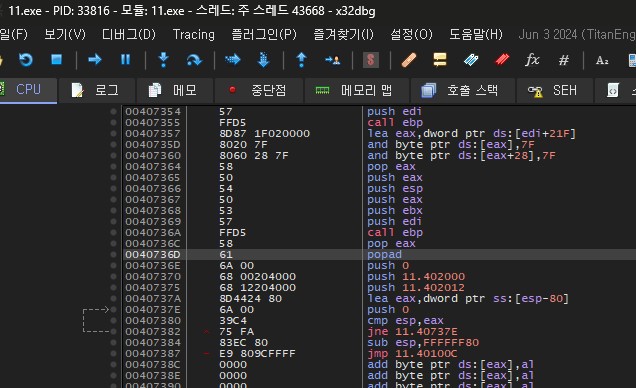 여기서 풀이한 프로그램과 똑같으며, OEP와 StolenByte 까지 똑같다.