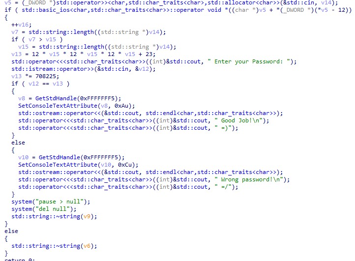 IDA의 강력한 기능인 C언어로 변환해 보여주는 기능을 사용했다.
