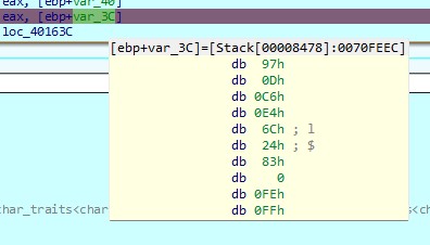 eax 에는 100 (hex : 64)이 들어있다. 그렇다면 [ ebp + 3c ] 에 Serial키가 있다는 말이된다.