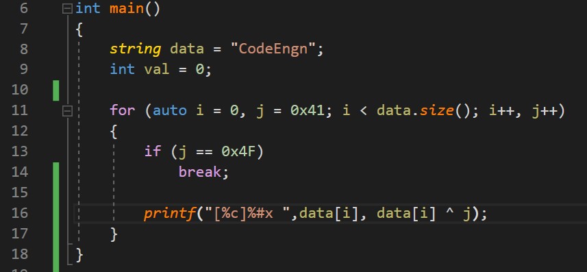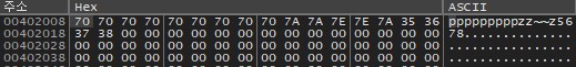 0x41~ 0x4E 까지 xor 연산을 진행했으니 18글자중 14글자를 연산한셈이고 뒤 5678은 연산을 하지않아 그대로인 모습