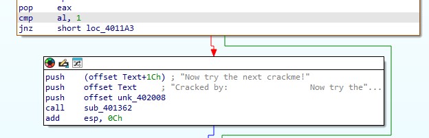 eax 값이 1이면 메세지박스를 볼 수 있겠다. al 이 왜 eax 냐면