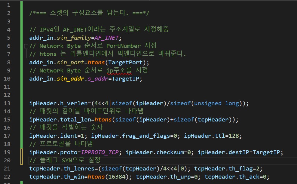 tcpHeader.th_win=htons(16384); tcpHeader.th_urp=0; tcpHeader.th_ack=0;