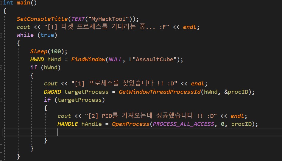 https://imoracle.tistory.com/49 [Assaultcube] FPS게임 분석 및 핵 제작 - 2 -핵툴 개발 리버스 엔지니어링을 통해 동작중인 게임의 메모리주소를 얻은 후 프로세스에 접근하는 방식은 내부접근과 외부접근