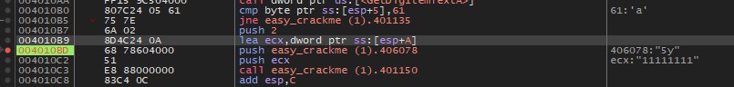입력된 문자열의 두번째 글자와 0x61 (a) 를 비교한다.