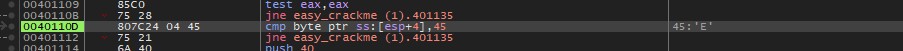 입력받은 문자열의 첫번째글자가 0x45인지 비교한다.