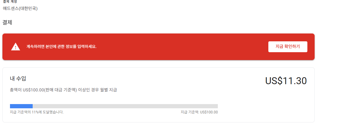 최소 출금액에 미치지 못한 소박하지만 소중한 광고료를 잃게 되었네요